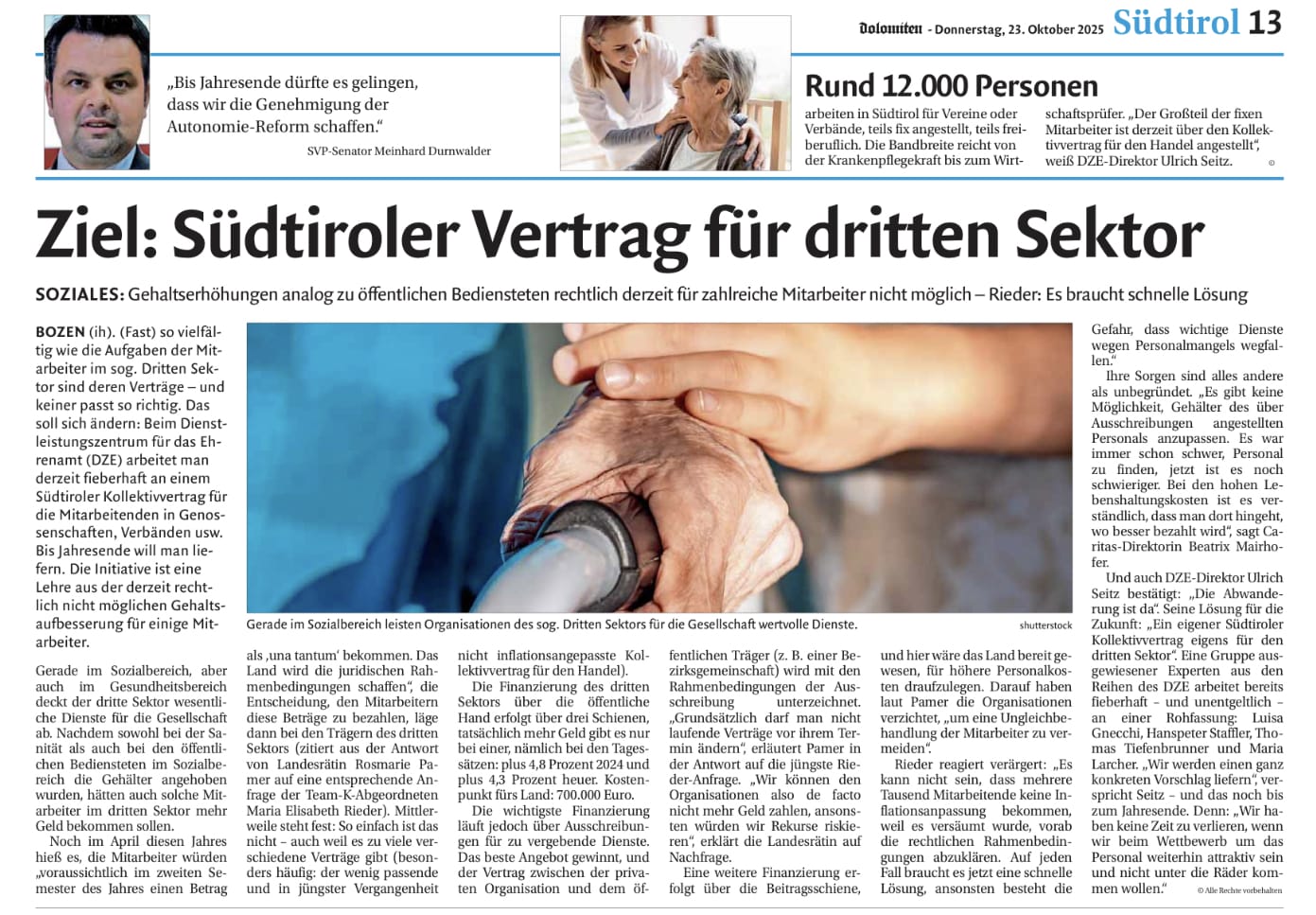 Gehaltserhöhungen analog zu öffentlichen Bediensteten rechtlich derzeit für zahlreiche Mitarbeiter nicht möglich – Rieder: Es braucht schnelle Lösung
